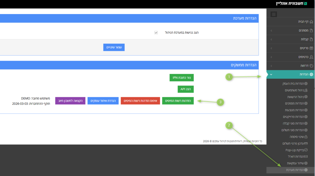 2. הפעלת מודול חשבוניות ישראל בחשבונית אונליין