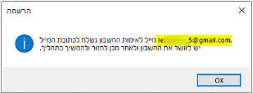 חשוב: כל עוד לא מאשרים את החשבון דרך המייל, ההודעה תמשיך להופיע במערכת