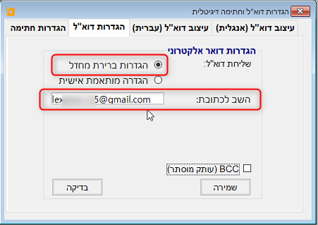 5. עברו ללשונית “הגדרות דוא”ל“ ← וסמנו את האפשרות “הגדרת ברירת מחדל“.