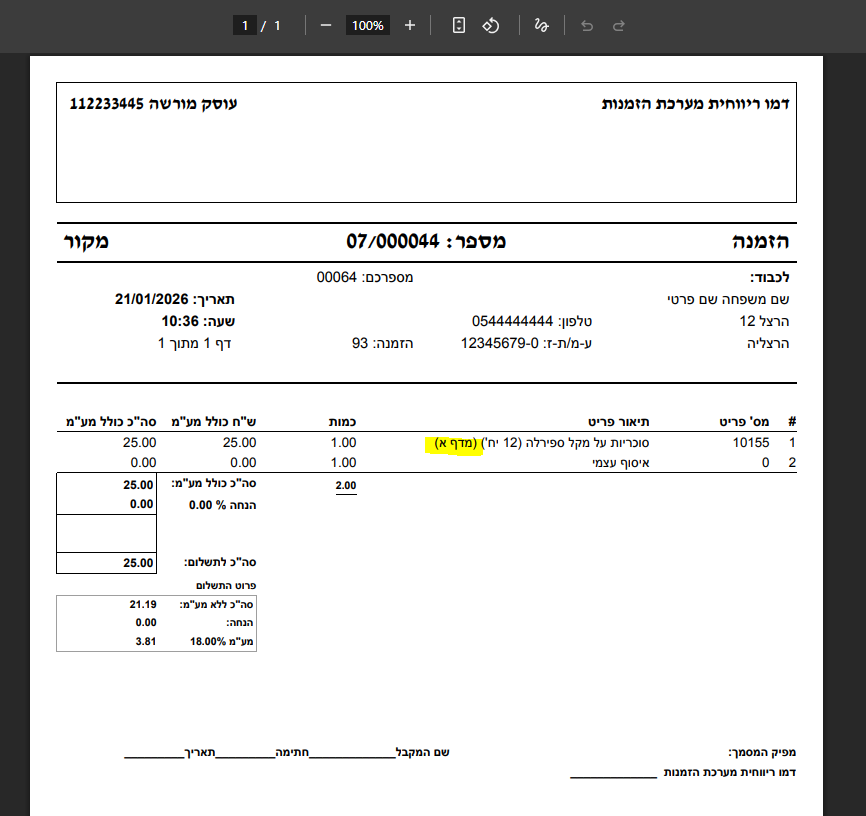 לבקשתכם, מספר ההזמנה במערכת הזמנות אונליין מתווסף אוטומטית לשדה מספר הזמנה בגוף המסמך.